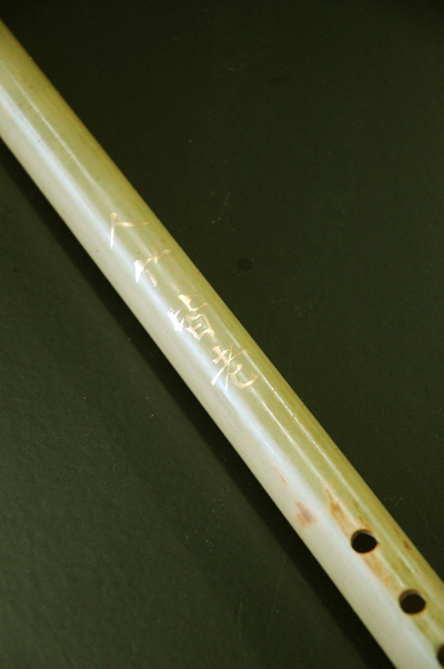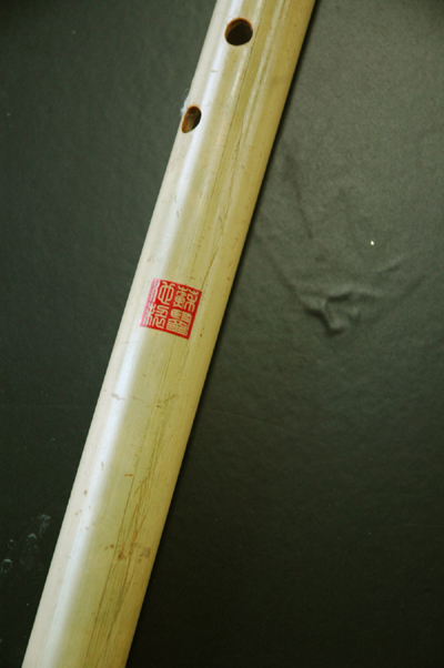 箫 上 贴 有 我 的 制 箫 专 用 印 章 (也 是 用 透 明 贴 纸 做 出 来)。