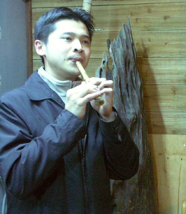 就讀研究所的劉宗岳同學是竹笛科班新秀,有很好的口風適應能力,不管笛、簫、u、唐吹口,粗、細管一次到位,且音色張力均能發揮,令人驚嘆!