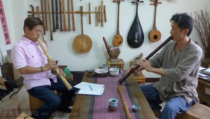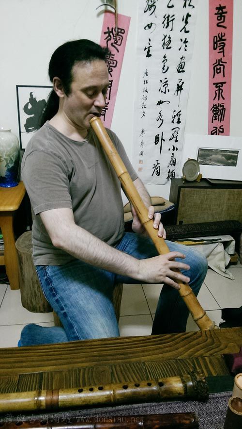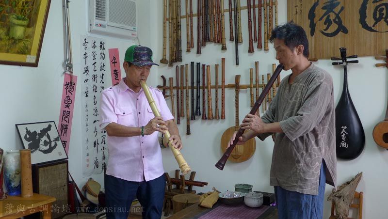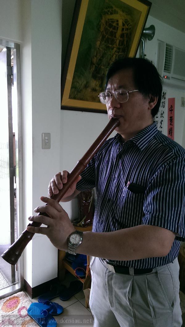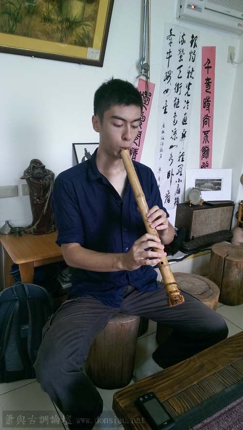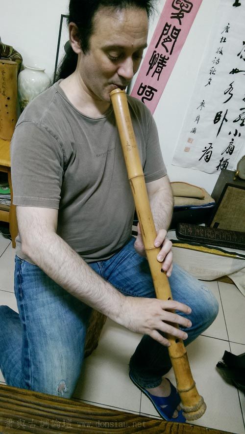 已經退休,將在台灣長住一段時間,特來學習簫曲,用五孔尺八吹簫曲,