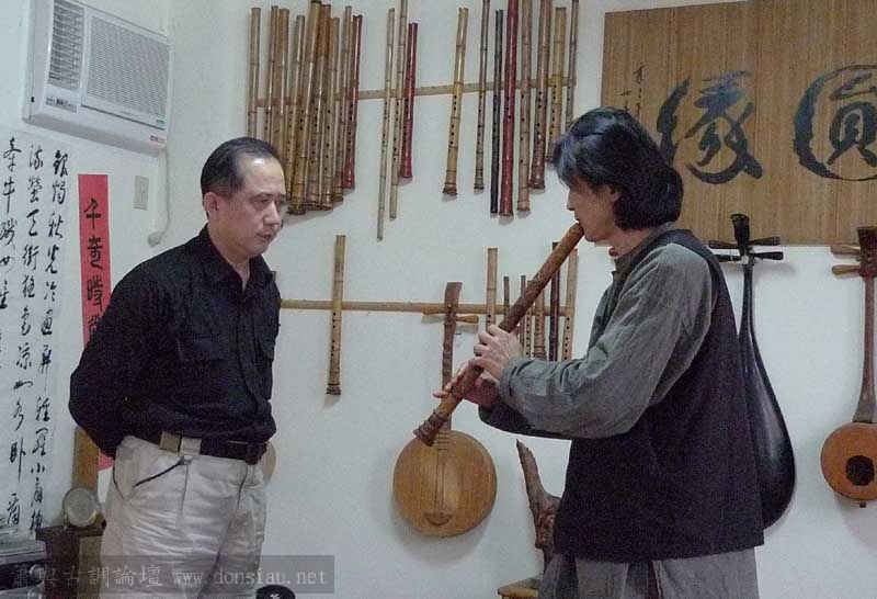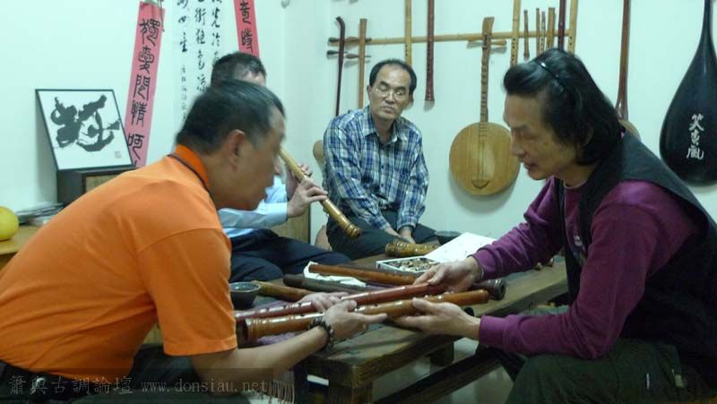 錦德兄帶兩位基隆資深簫友來訪,李先生吹六孔簫多年,文松建議使用八孔,