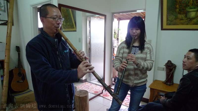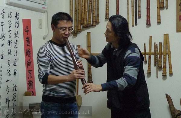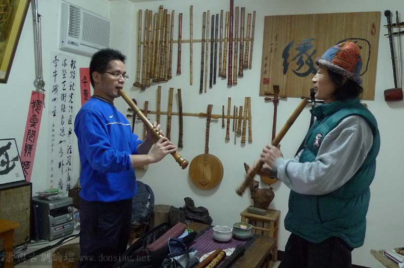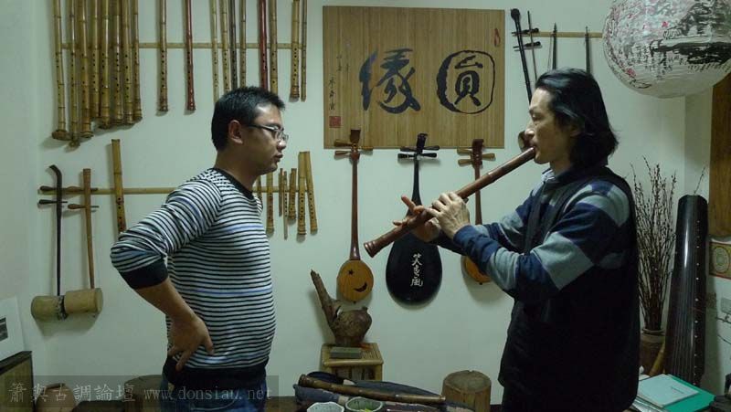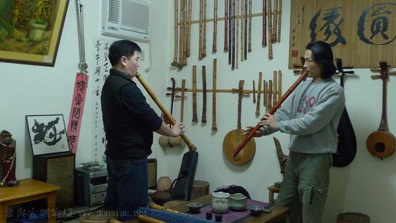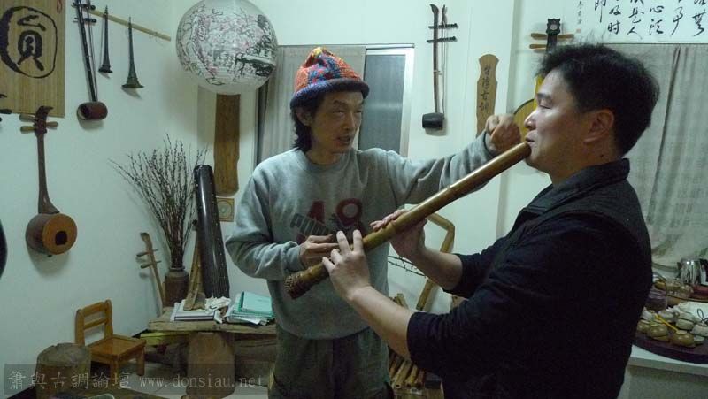 來自上海的簫友利用台北自由行到文松工作室交流,兩位都鍾愛唐口簫,