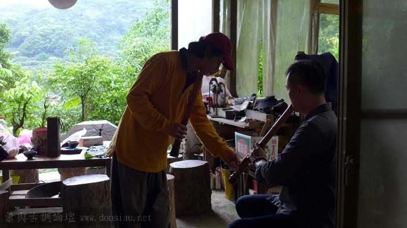 周先生新研發的絲絃(非賣品)爲文松十多年前所斲的台灣黃檜琴更替,
