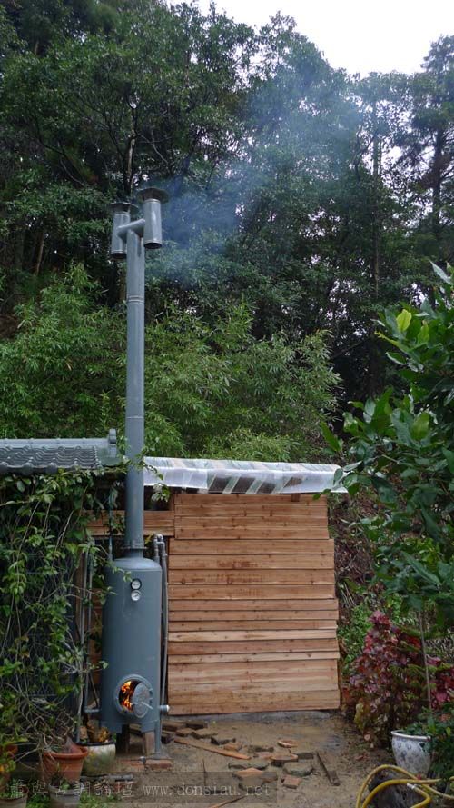 山居已經完成了衛浴設備,從事鍋爐製造的堂哥提供一座燒柴鍋爐,