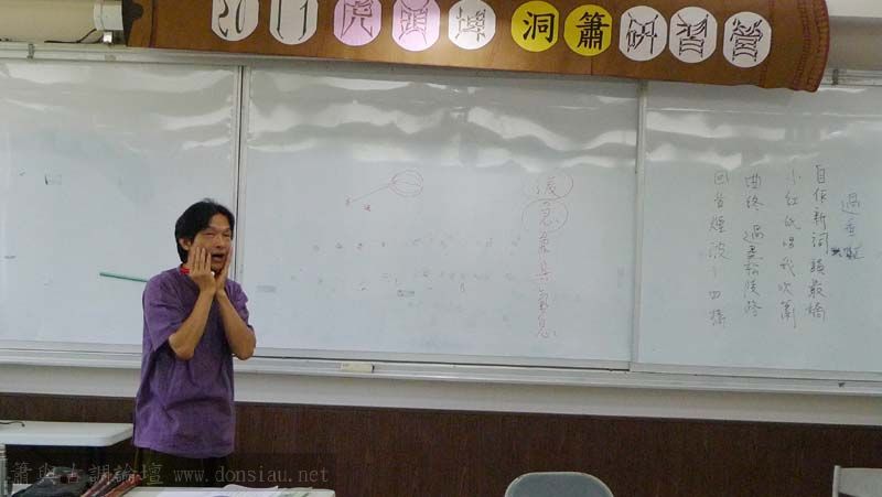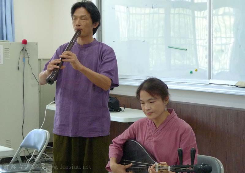 接續的課程由文松夫妻講解南管簫法,並以〔鳳簫聲斷〕曲示範南管音樂中給簫的留白與即興方式