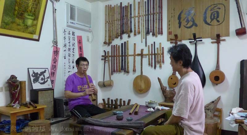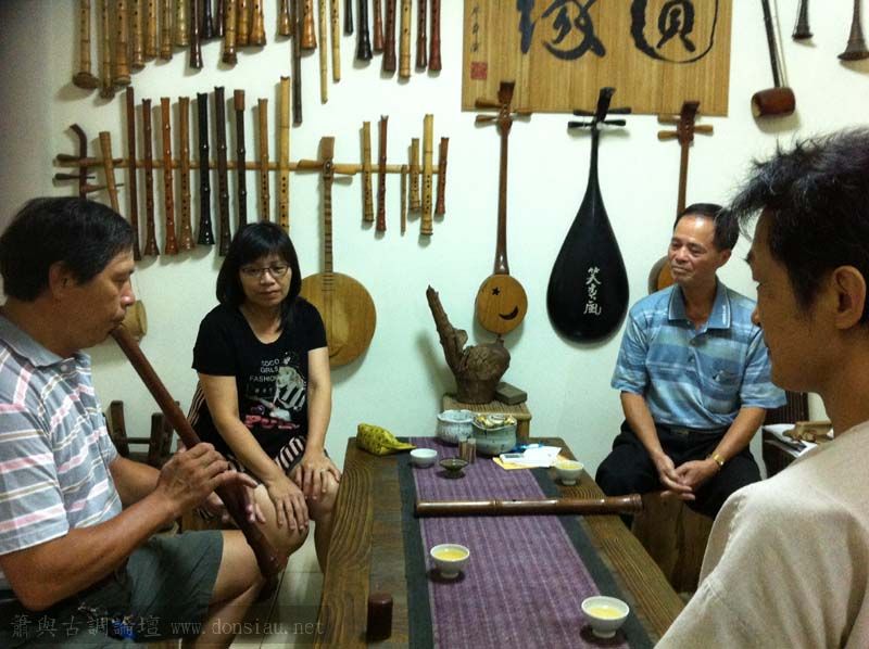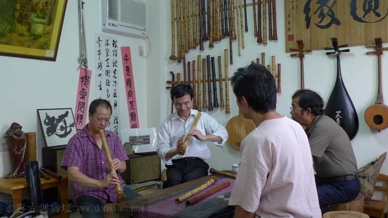 許先生伉儷與鄭先生先後到訪一起交流,許先生加訂一管f調唐口簫