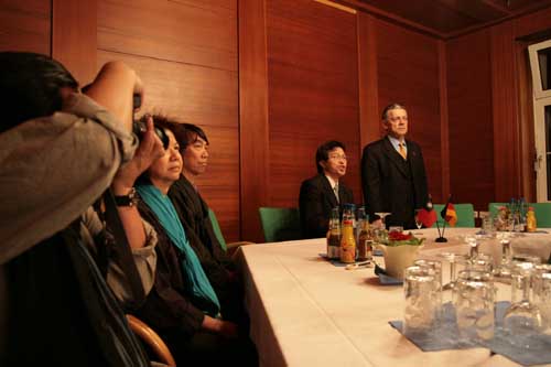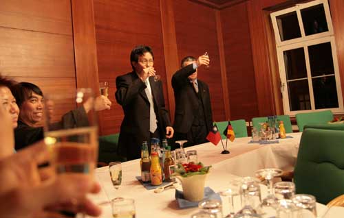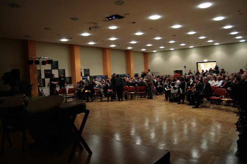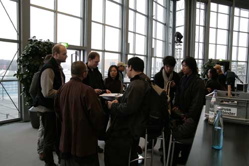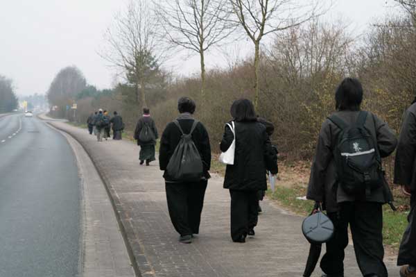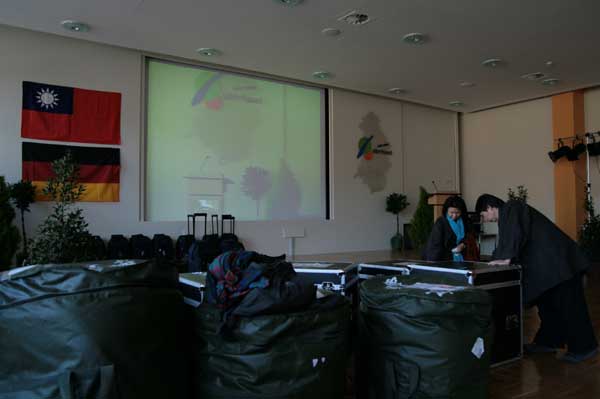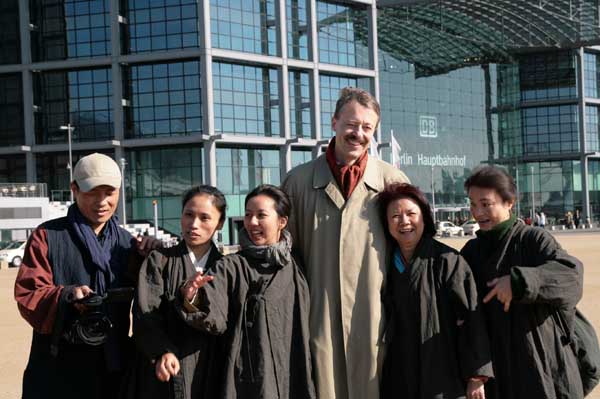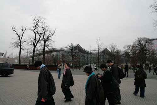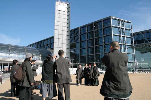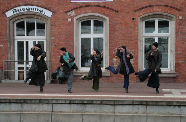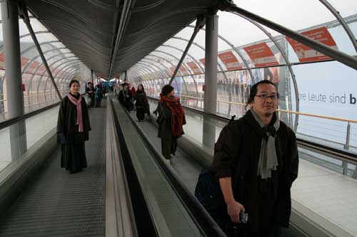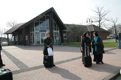 往漢諾威班車說要一個小時後才有,大家於是在月台排練起來!