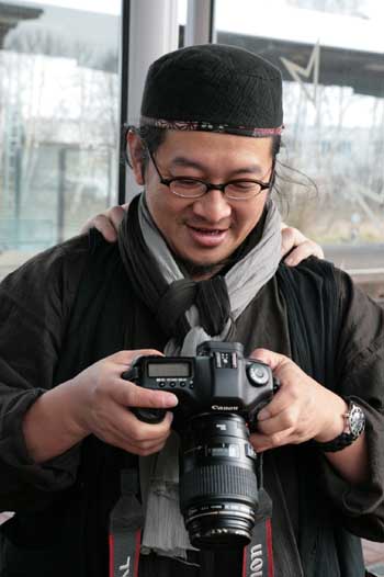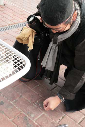慶隆兄從另一月台拍攝紀錄,一不小心,像機摔下來,只聽砰一聲,鏡片破了!這回損失不少,