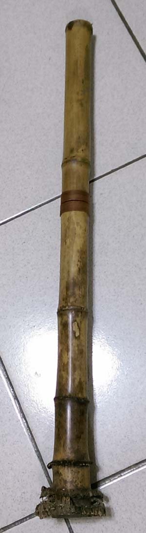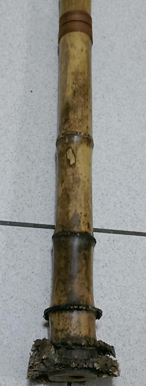 棘齿棒打磨的痕迹。但竹节处的环状凹凸还没有去除。最后会做成光滑的内壁吗?