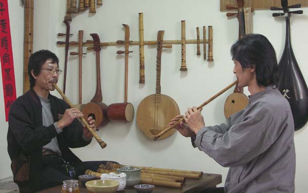 昨日歐陽先生再訪,試吹大小管徑新作品.