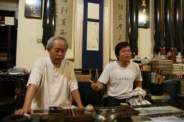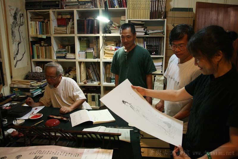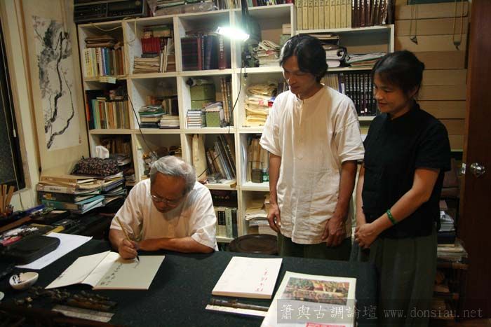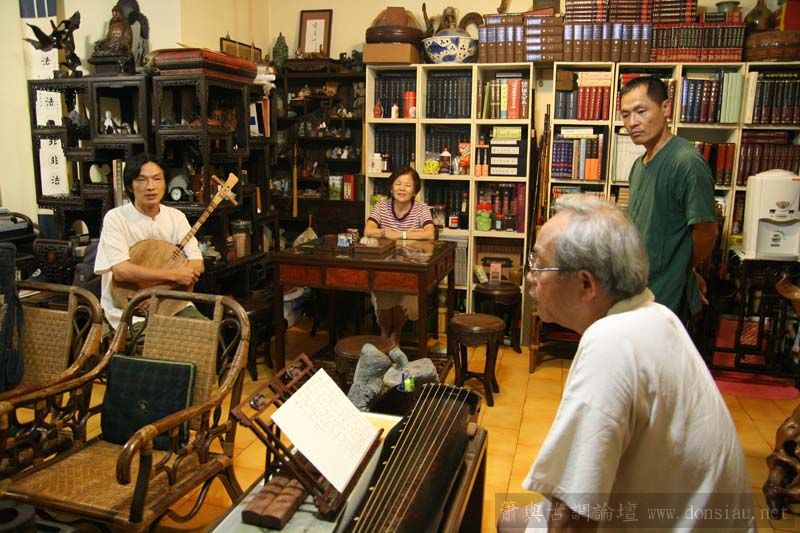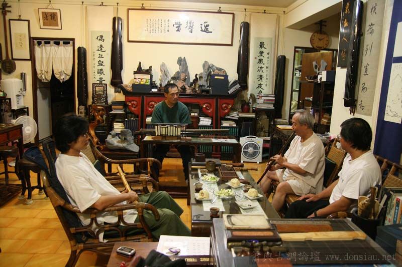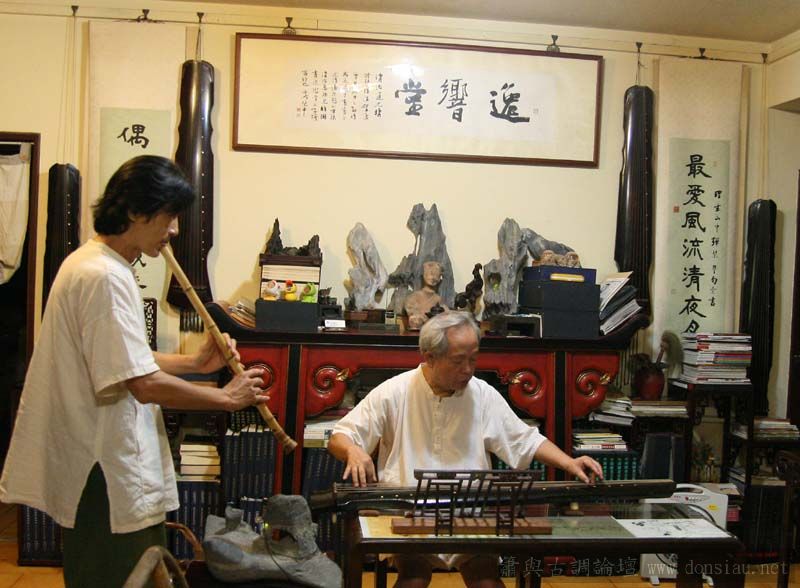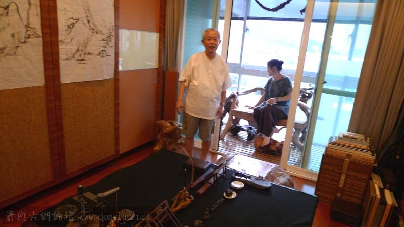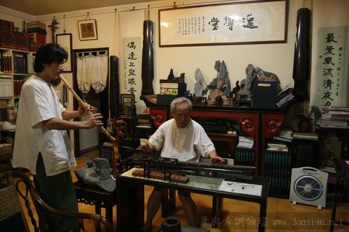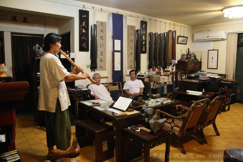 張老師試吹文松琴簫讚美有加,也拿出收藏的諸多各式簫器;