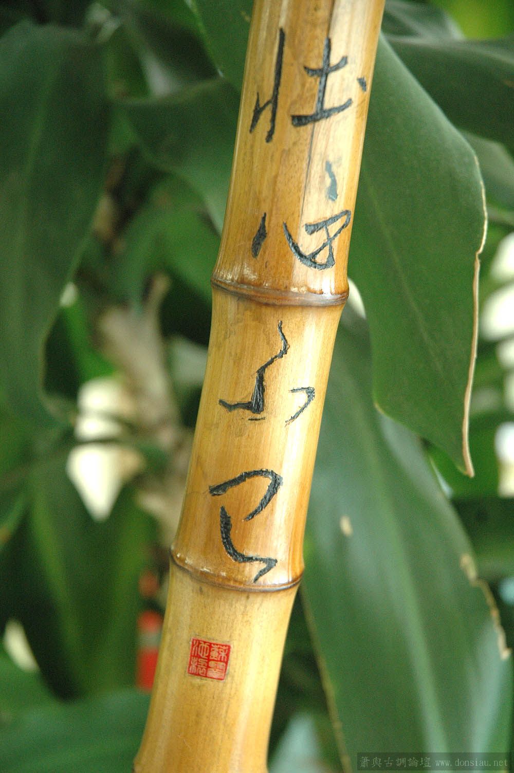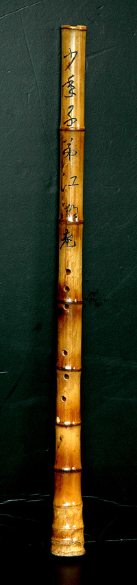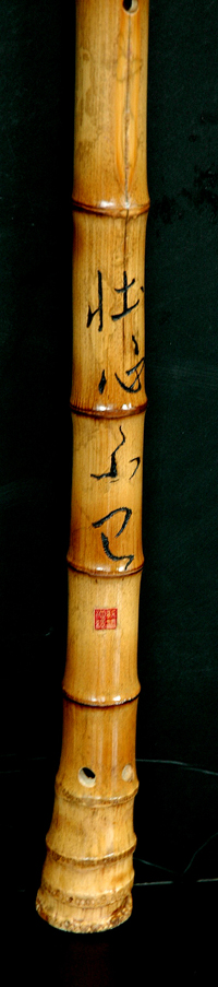 每免调子过于低沉,乃在箫背面加刻曹操名句 “壮心不已”,以振奋精神!
