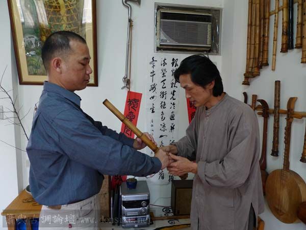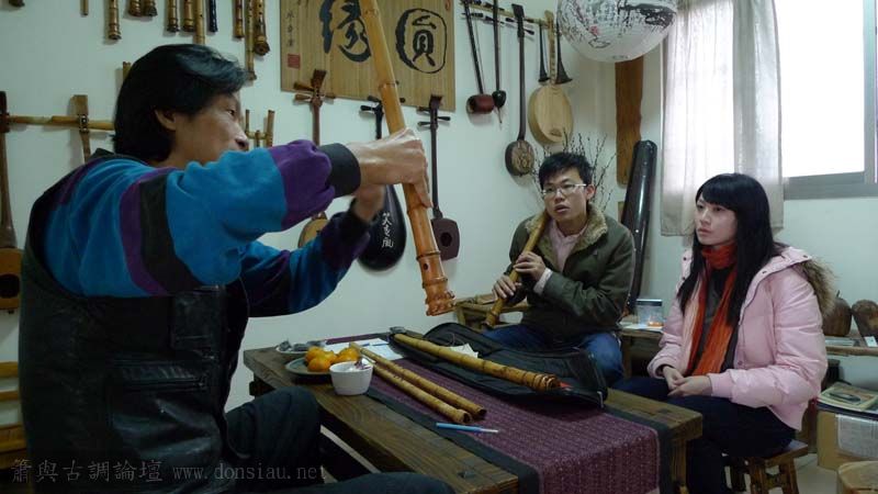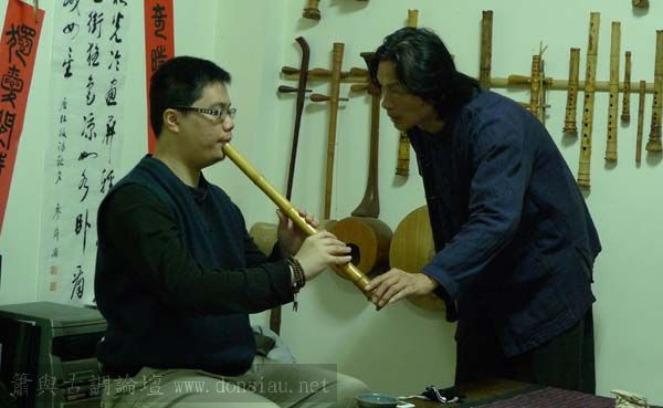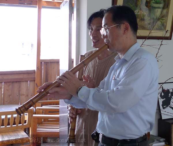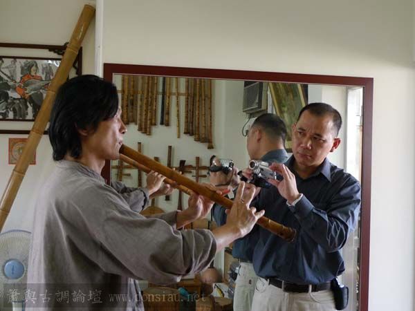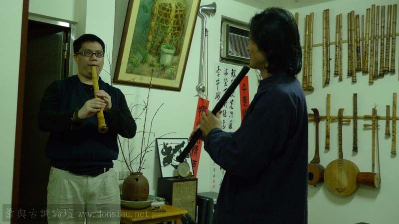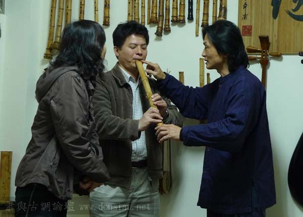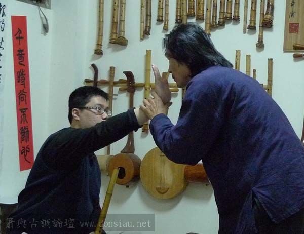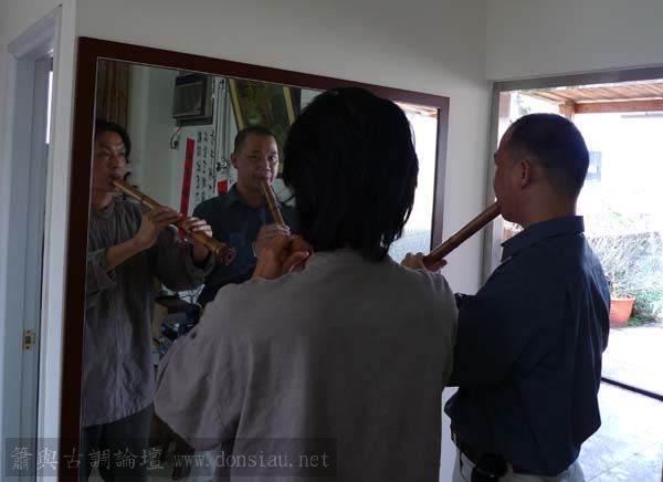 朱先生來學習唐吹口八孔簫,更改以前六孔U口習慣,