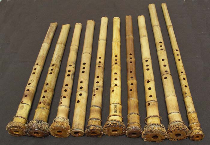 左起唐口G調兩把,u口及半uv之DG五把,含短尾管及無尾律管;