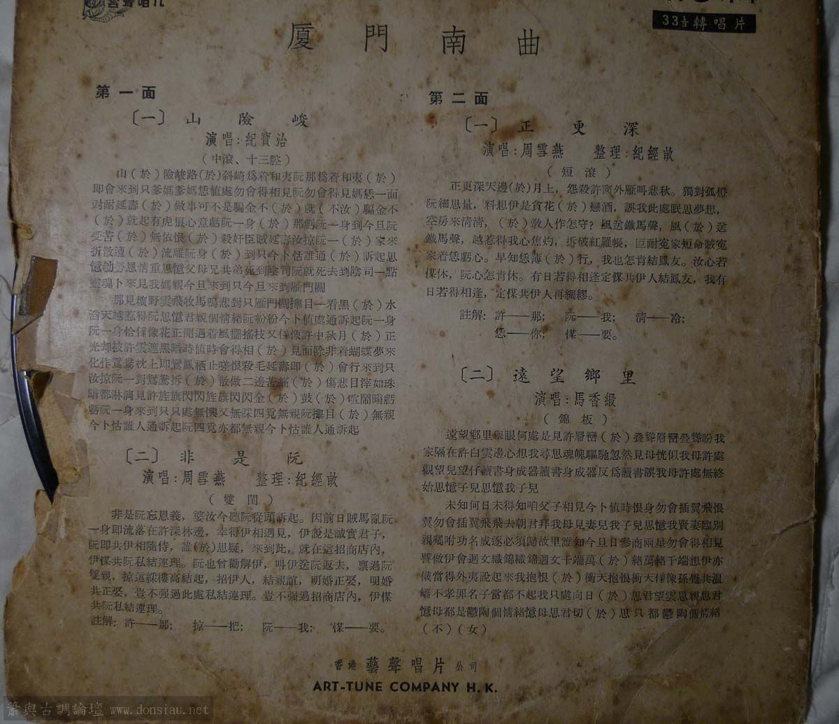 朋友拿到幾張南管老唱片,標示廈門南曲,都是常見的曲子..
