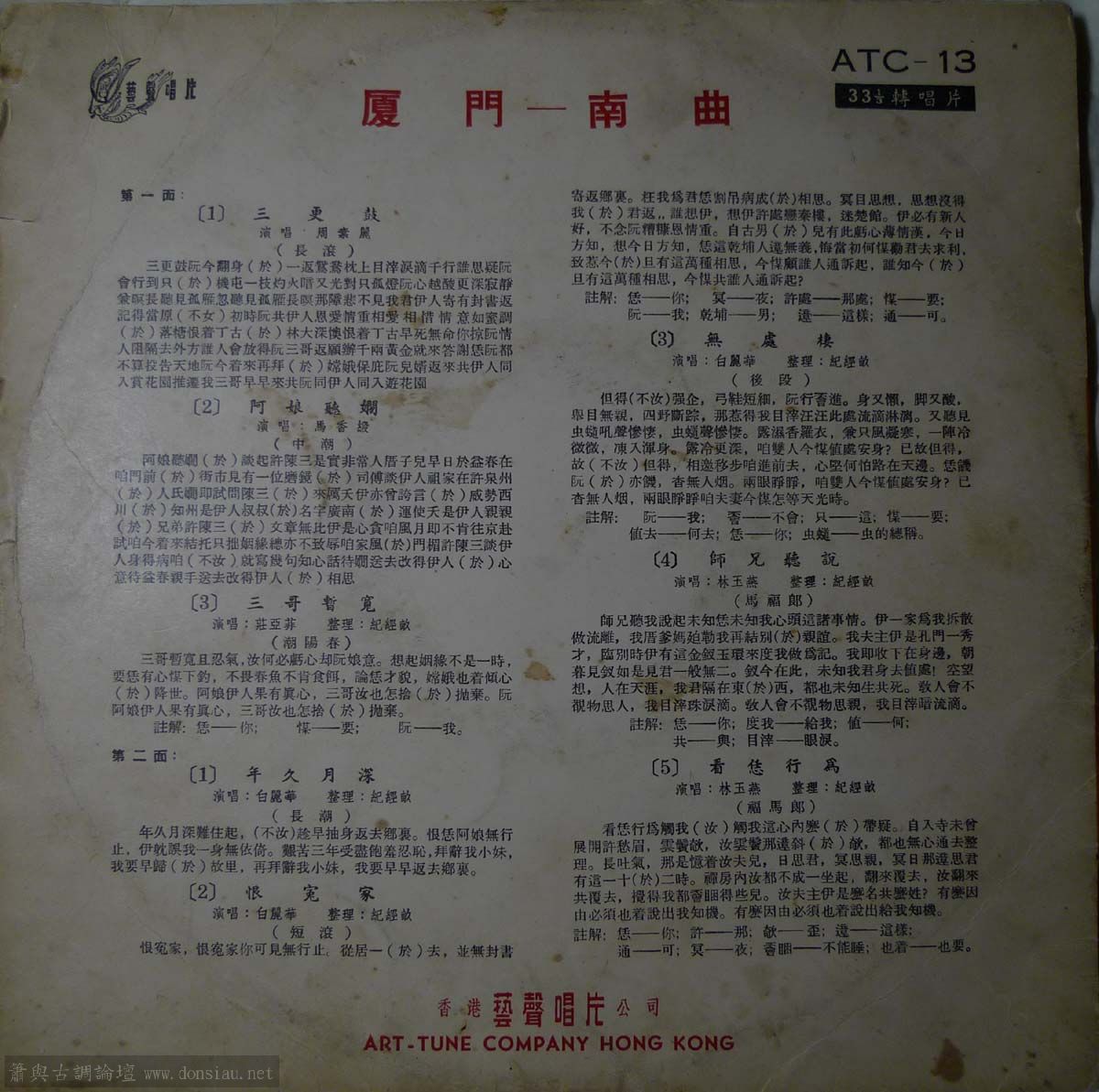 演唱者有:馬香緞,白麗華,林玉燕,莊亞菲,周雪燕等