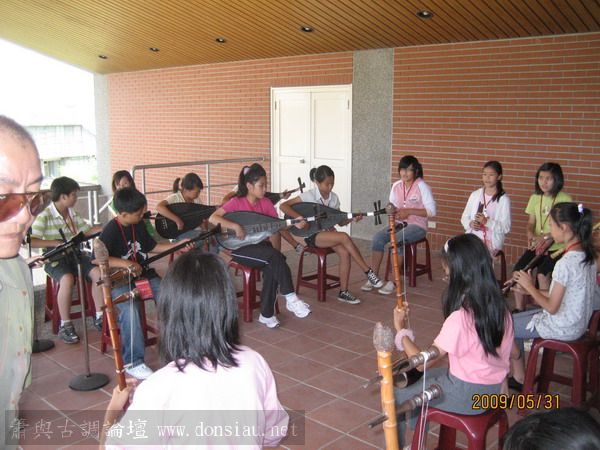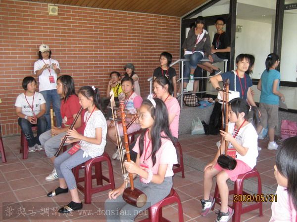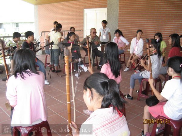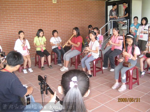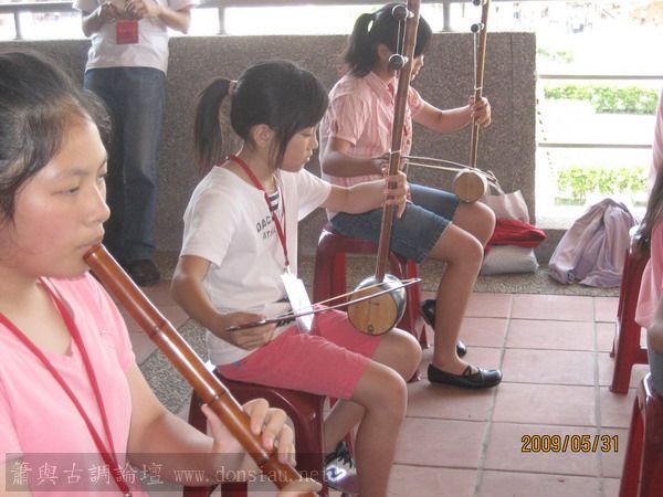 照片上方帶著白色帽子,正在拍照的人就是催生這群未來菁英的推手--興仁國小的教導主任彭增龍先生,幾年來出錢出力來培育這些南管幼苗,老師的鐘點費幾乎都是由他個人支付,卻無怨無悔,樂此不疲,要知道這是一筆龐大的支出啊,這樣的人不知道能不能拿薪傳獎! <目前以前在興仁國小畢業的南管社學生,幾乎都於淡水正德國中就讀,也持續的再學習南管,這次也有參予表演,很令人期待他們未來的表現>