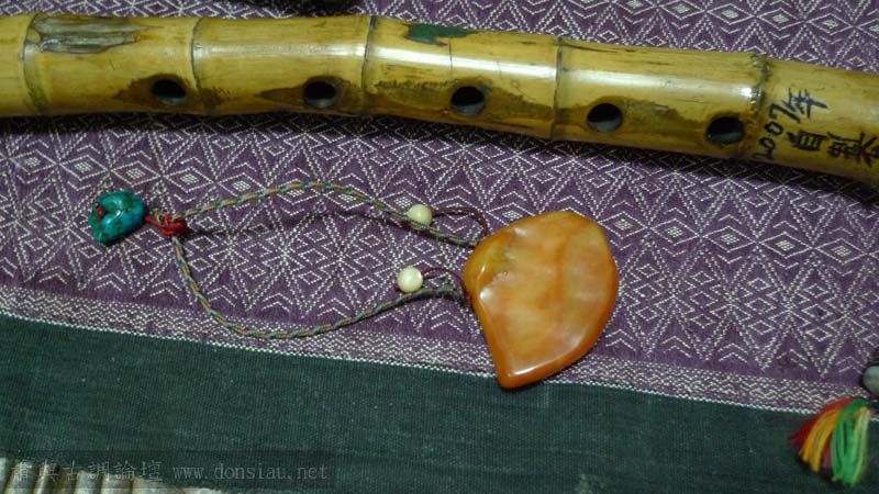 帶了一把他用藝石換來的木簫讓我試,鑲了貝殼鳳凰,外表很精美!