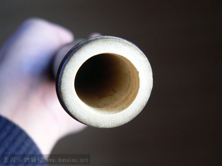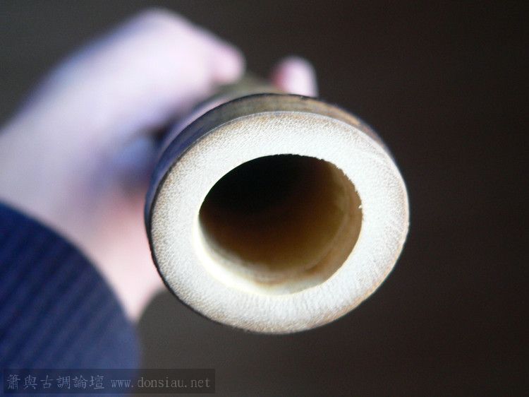 今天处理一根小毛竹箫材,由于尾端过扁过弯,又有裂纹,锯之,得52CM短管一支,通节清膛,测得吹口端内径:最宽处2.1CM,最窄处2.0CM,壁厚4mm;尾端口内径最宽处2.3CM,最窄处1.9CM,壁厚5.5mm,拟做无尾短管,请教一下各位专家达人,这样内径的扁管是否需要做倒管呢?谢谢!