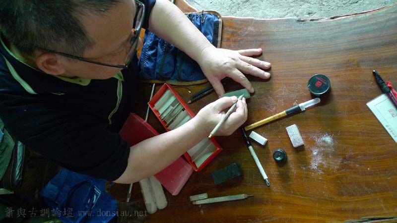 學簫之餘教導我們篆刻工法,也可應用於竹木雕刻,
