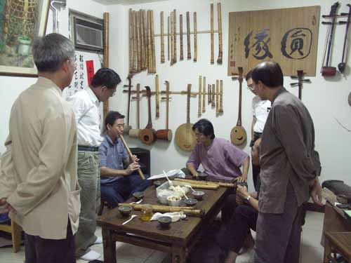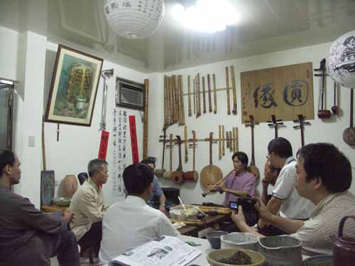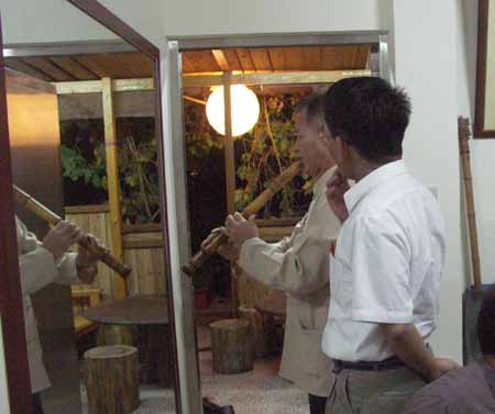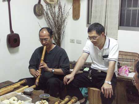 對u口簫有很濃厚興趣,各式u口簫把玩了很久,也試用於吹奏一段本曲:越後三谷.
