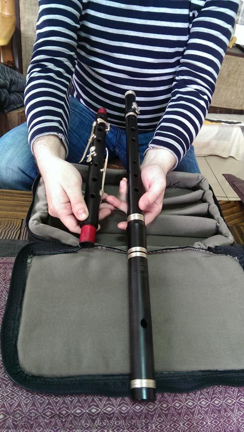 Gary今天來學習順便帶來一口兩身木長笛,一管是最早期的原始六孔加一鍵(尾指一個半音)管身,