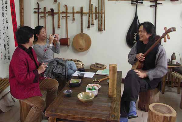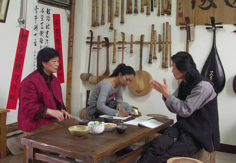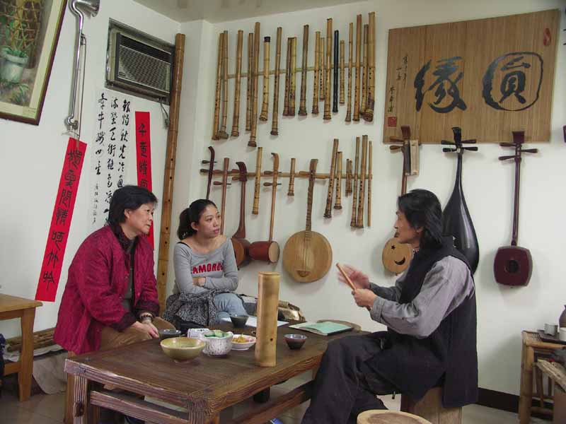 林老師雖是學者,也是深入南管領域的絃友,已故薪傳獎藝師吳坤仁的弟子,專攻南管唱曲兼學洞簫,台北藝術大學副教授,對傳統音樂教學用心深入,為傳統音樂教學與整理不計名利投入心血,貢獻良多,是位令人尊敬的老師。施小姐是以前國樂團的同仁,專於二胡又深造於藝術大學,多年不見,彷彿換了一個人,深入傳統藝術領域,好像也變化了氣質!