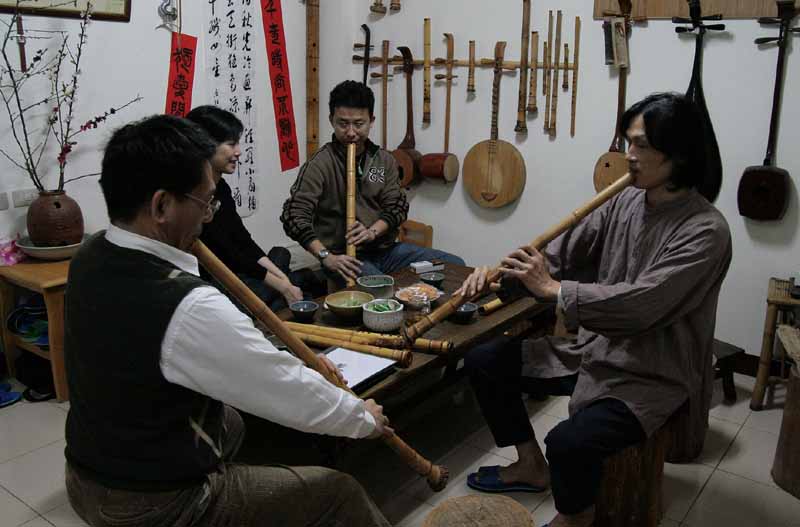 林老師忙碌於教學與演出,終於在歲末抽空與夫人再訪,一把尺六管順便交給他。