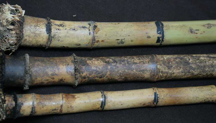 整理中的簫材,竹斑各有特色!