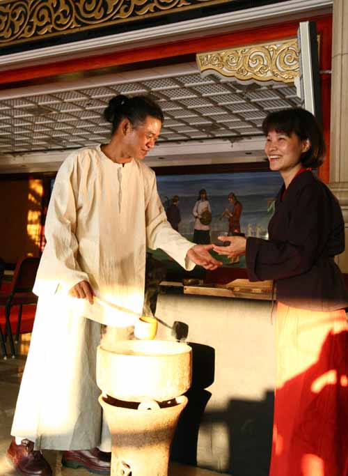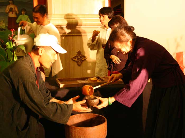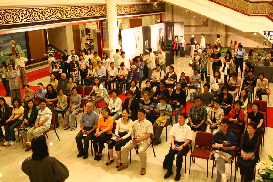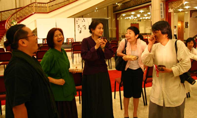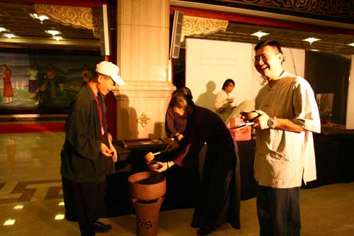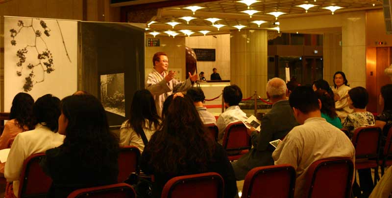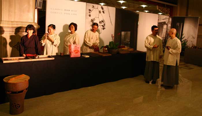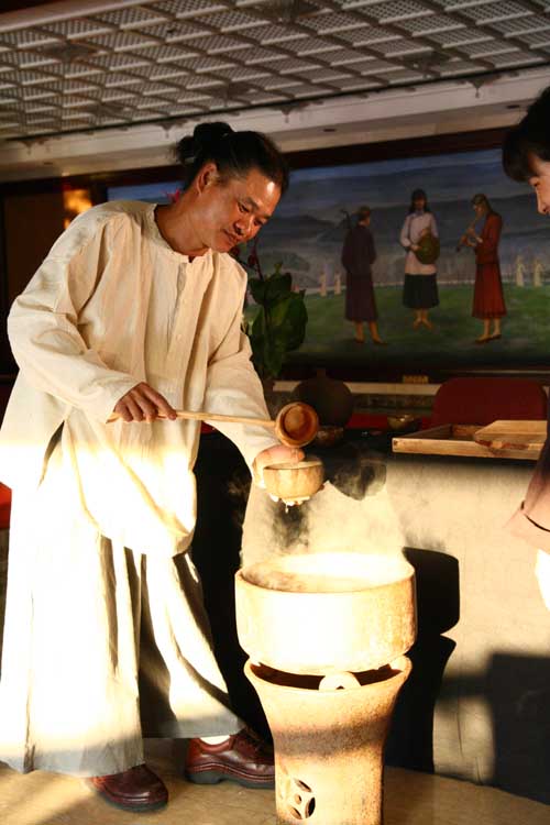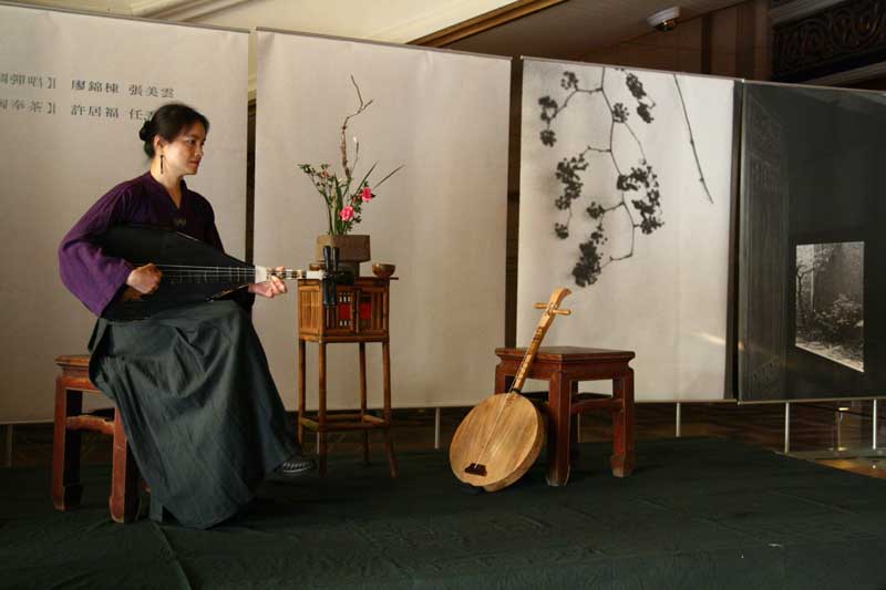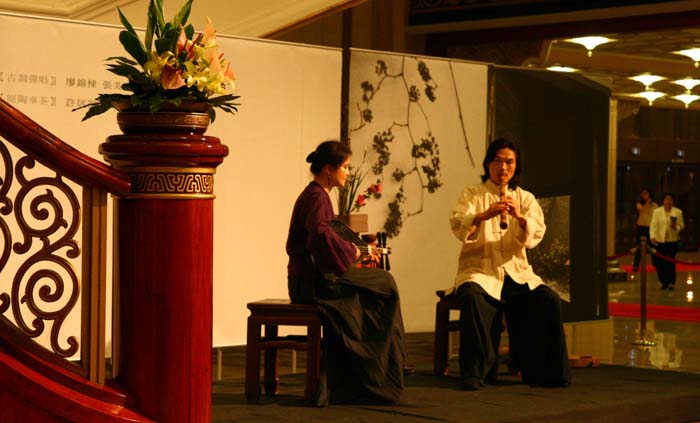鄭惠中老師負責場地規劃,邀請陶藝家許居福伉儷參與陶藝展出及俸茶,將音樂廳西側大廳佈置得古色古香,