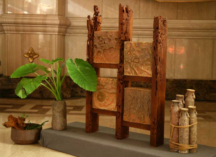空曠場所在鄭老師及許老師的巧思下,佈置得古典雅致,尤其許居福老師的原陶創作,純手工捏出的古樸禪意!