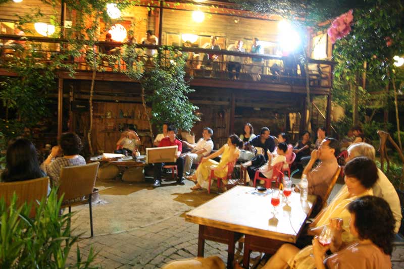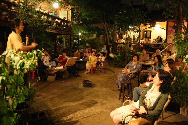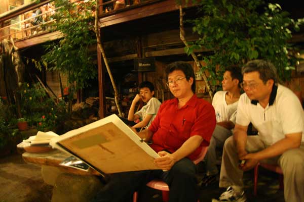 庭園與閣樓來賓滿座,游善富老師也在現場作畫;