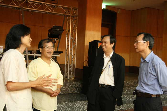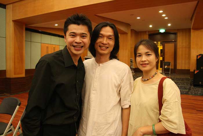 第一次聆聽我調製後的大笛在舞台演奏,泛音列的曲段應用及低沉的共鳴音色,令人陶醉!休息時間陳中申老師談及他早想拿笛來實驗,卻被劉同學捷足先登,約好暑假將來進一步交流!范教授也有意來訪.