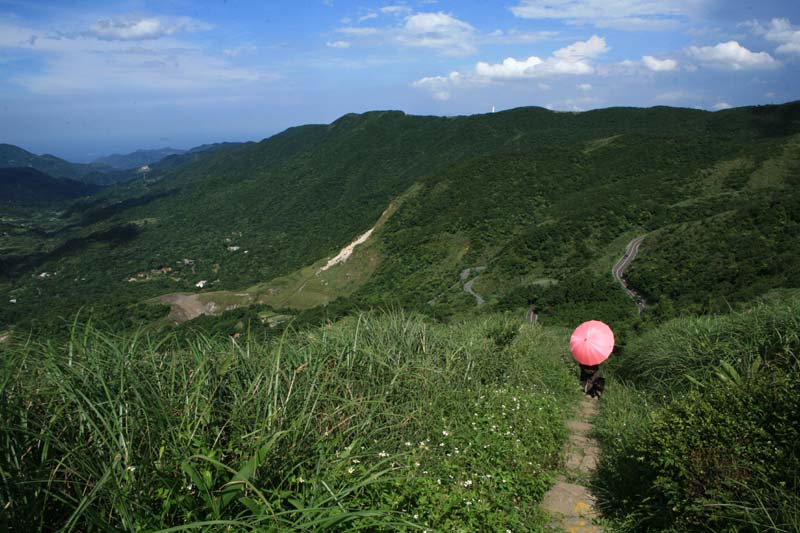 周日與老婆及我家守護烏ㄟ遊於草山山區古道,沿路涼風習習,甚是舒爽!走著風櫃口往擎天崗的陵線,遠望兩側,一邊是萬里海線,一邊是台北市區,景色美麗!