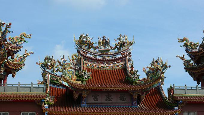 藍天背景,襯托出廟宇建築的華麗!